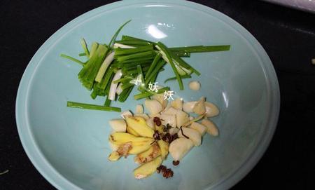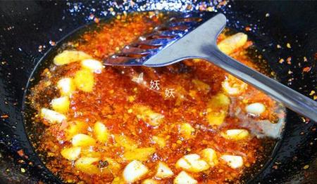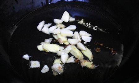 4,油锅烧至五成热,下姜蒜花椒炒香。