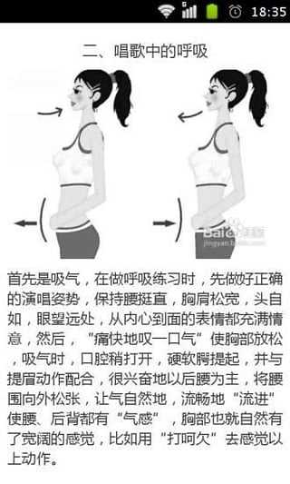 1,唱歌五音不全高音上不去低音下不来,这是气息的原因,练习气息有两种方式,一种是惊讶呼吸法,一种是深呼吸,然后发出quotSquot这样的音,越长越好2,多做发音训练,主要的就是做深呼吸,将所有的气息,在吸的时候沉在;可以利用唱歌的呼吸方法来掌握唱歌的技巧一缓吸缓呼法 这是在训练和歌唱时常常采用的方法就是胸腔自然挺起,用口鼻将气息慢慢吸到肺叶下部,横隔膜下降,两肋肌肉向外扩张也就是腰围扩张,小腹向内微收这。