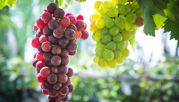 葡萄是葡萄科藤本植物,葡萄是世界最古老的果树树种之一,原产于亚洲西部,世界各地均有栽培,约95%集中分布在北半球,可用作生食、制葡萄干或酿酒,酿酒后的酒脚可提酒食酸。其根和藤药用能止呕、安胎,果实可以用来防止血栓形成。葡萄树一般为小枝圆柱形,有纵棱纹,无毛或被稀疏柔毛,叶卵圆形,圆锥花序密集或疏散,基部分枝发达,果实球形或椭圆形,花期4-5月,果期8-9月。