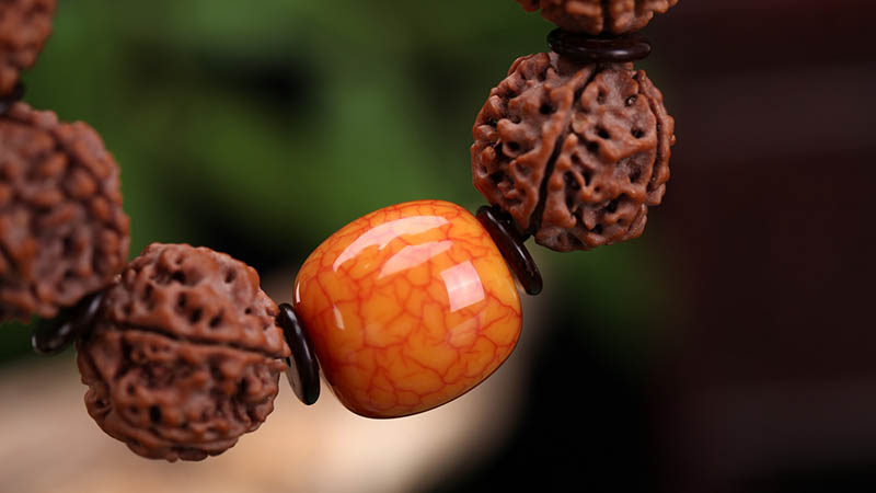 孔道是指我们所说的穿绳用的孔,金刚菩提子的孔道产生在乳突;落地红孔道在正圆的圆心处,孔道也比较规整,圆形居多。