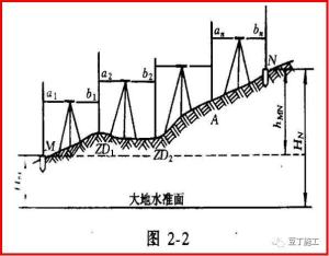 方法计算:加设若干个临时立尺点(称为转点ZD),依此测定负数相邻两个点的高差,取各高差的代数和即得到起终两个点的高差。