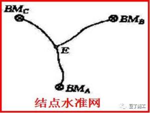 (4)结点水准网:由若干条单水准路线相互连接而成的图形。可分为附合水准网及独立水准网。