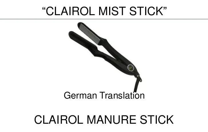 Clairol branded its curling iron for hair with the name Mist Stick in German, even though “mist” is German slang for manure.