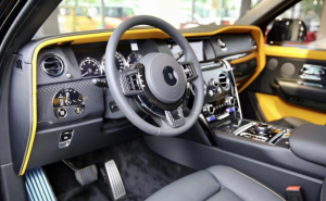 这辆车子的内饰设计和外观有一点反差的感觉,外观看起来极其的正派,拥有不俗的气质,原以为车子的内部会显得有些老气,会使用上实木的装饰件,但事实上这辆库里南的内饰颠覆了我的想象。整个车子的内部体现得是比较青春洋溢的,车内采用了较多的碳纤维饰板以及黄色的双拼色内饰设计,看起来非常的阳光。方向盘采用了三幅式的真皮多功能设计,车内搭载了10.25英寸的触控大屏,以及彩色行车电脑屏幕,看起来还是比较现代化的。此外,这辆车子在细节之处把握得也很好,比如头枕部分使用了劳斯莱斯的标志,并且头层小牛皮的材质显得更加的出众柔软。车顶部分配备了满天星的设计,即使不打开全景天窗也能尽享奢华。
