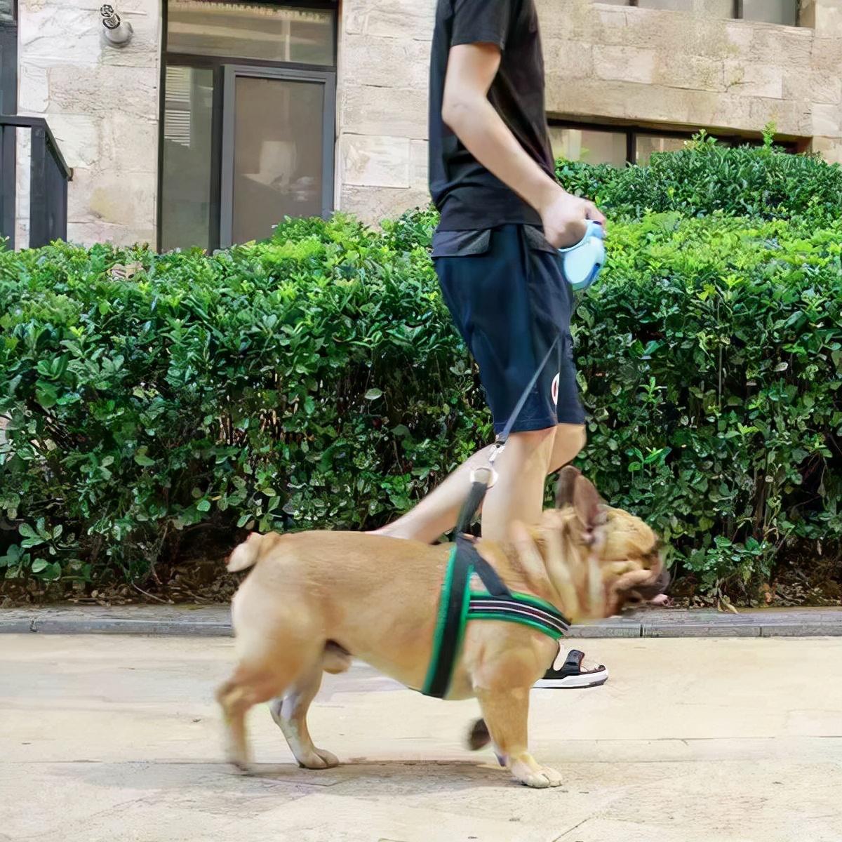 虽然法斗行动是比其他狗狗慢,但是也不能出门遛狗不牵绳啊,遇到惊吓的狗狗第一反应就是乱跑,这样是很容易走到马路上,发生交通事故的。