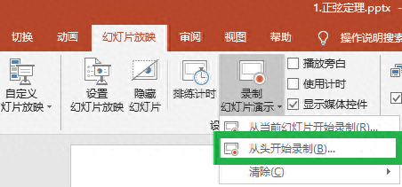 第二步,选择录制幻灯片演示,点击从头开始录制。