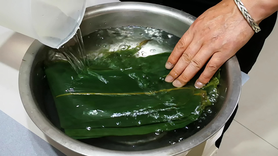 知道了鲜粽叶和干粽叶的区别,我们知道如果技术水平不好,最好选用鲜粽叶,这样处理起来简单,包的时候易成型、不断裂,那么究竟要怎样处理粽叶才能更柔远。更具有韧性呢?煮粽叶时别直接下锅,多加“一味”,粽叶柔软不脆,包时不断不裂。