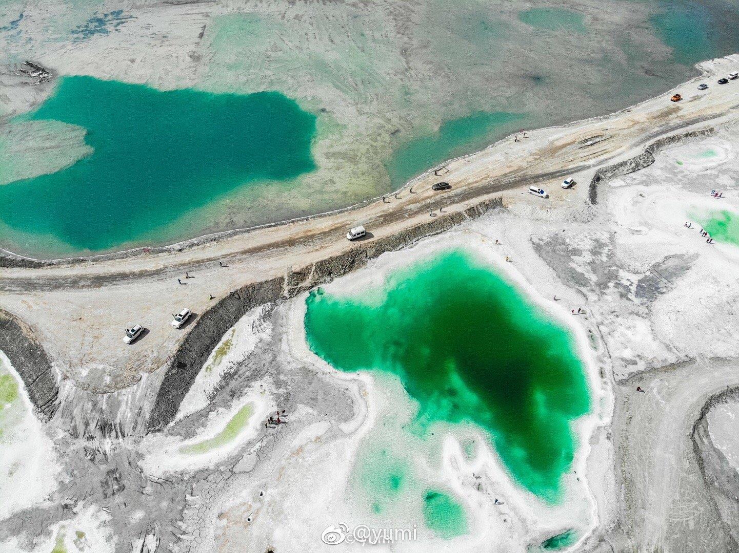 来到大柴旦,才知道有一处丝毫不亚于茶卡盐湖的美景---大柴旦湖,当地人俗称翡翠湖,因为她碧如翡翠、晶莹剔透,而得此名。由于这个地方还未进行人工开发建设,所以美的更加透彻,更加纯粹,毫无修饰。整个湖泊,好像一块碧绿的翡翠,绿的晶莹,绿的想让人落泪。在湖的一角有个像火锅的湖泊,可以去找找哦~?你可以等到太阳落山,在这里看一场浪漫的晚霞和夕阳。?翡翠湖目前还处于未开发的状态,是不需要收门票的。?在旁边游玩要注意安全,不要陷进去了 ?随身垃圾记得带走