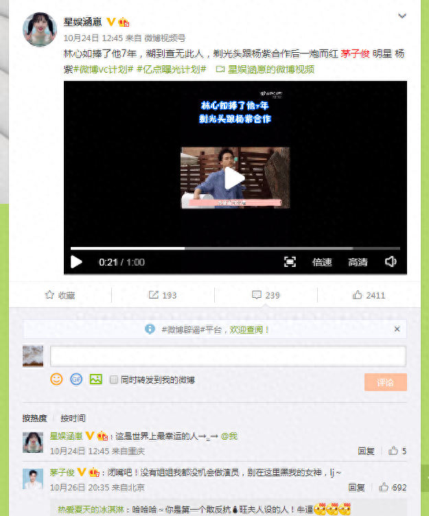 10月24日,某营销号在微博上爆料,茅子俊被林心如耽误了,跟着她混了七年却糊到没人知,反倒是和杨紫合作一次之后就爆火了。