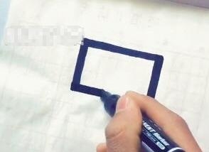 1、先要在纸上或者雪地中画一个长方形,长宽的比例看起来是4:3左右就可以了,不会的看下图: