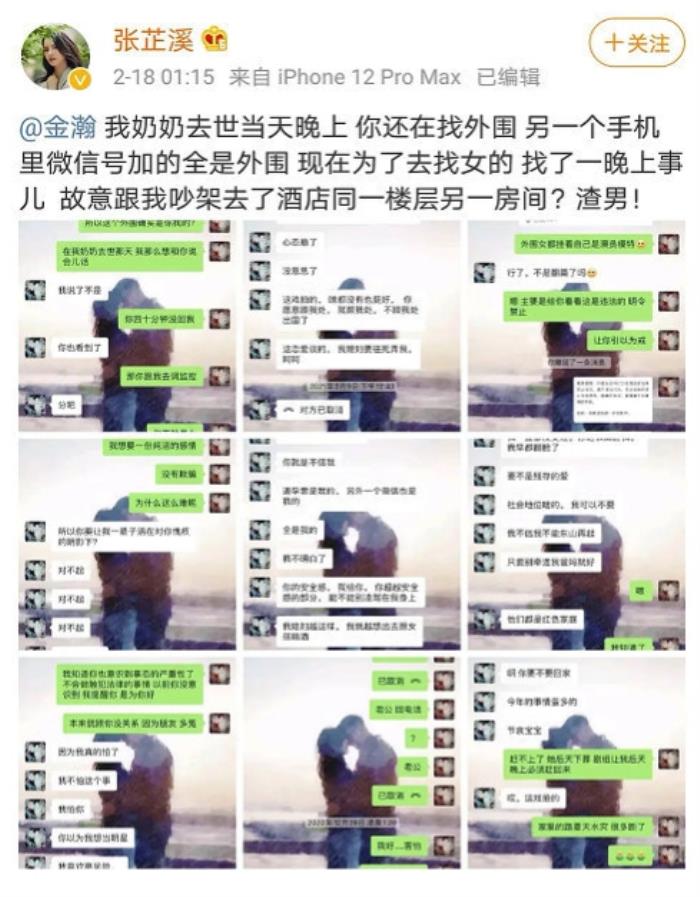 只是2025年2月,张芷溪突然在微博上晒出聊天记录,并痛斥金瀚出轨。