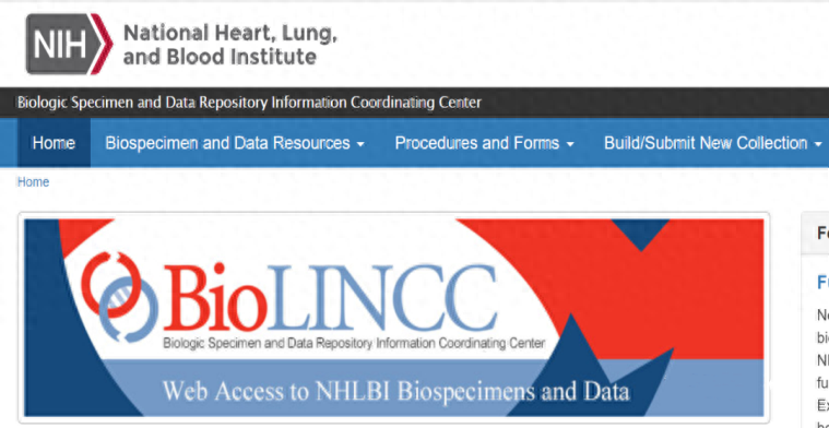 BioLINCC 是生物标本和数据采集信息中心,由美国国家心脏、肺和血液学研究所(NHLBI)建立,用于帮助科研人员更便捷地获取研究数据,同时提高项目转化率。