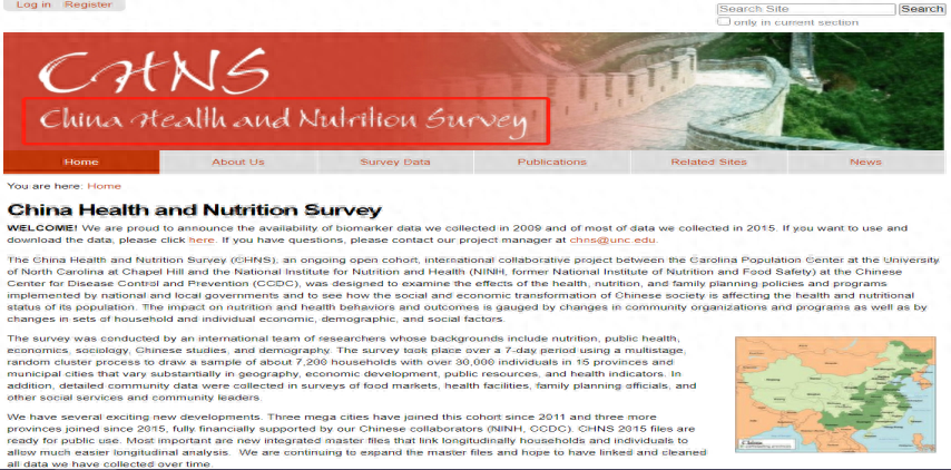 CHNS 是中国的健康与营养调查,由美国北卡罗来纳大学人口中心与中国的预防科学医学院联合进行的大规模的社会健康调查。