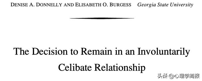[1] Donnelly, D. A., & Burgess, E. O. (2008). The Decision to Remain in an Involuntarily Celibate Relationship. Journal of Marriage and Family, 70(2), 519–535.