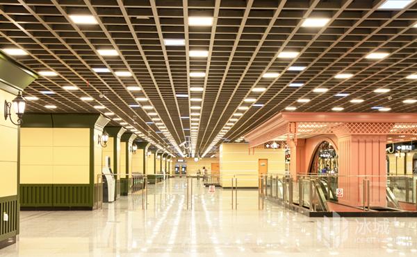 人民广场站在设计上,突出现代时尚与古典端庄的融合,带入欧式教堂的彩绘玻璃与穹顶元素,车站中的每一处设置,犹如广场中独立的景观,在灯光的衬托下显得格外瞩目。