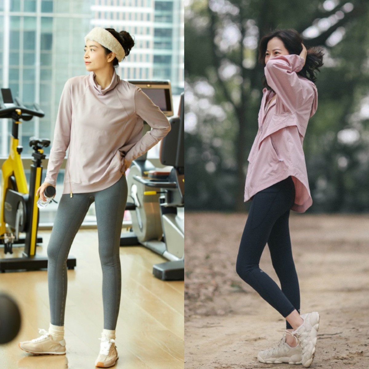 除此之外,我们还可在颜色上多加注意,推荐尝试衬衣与瑜伽裤的“同色系”搭配,视觉上给人和谐、统一的视感,高级又不会出错。