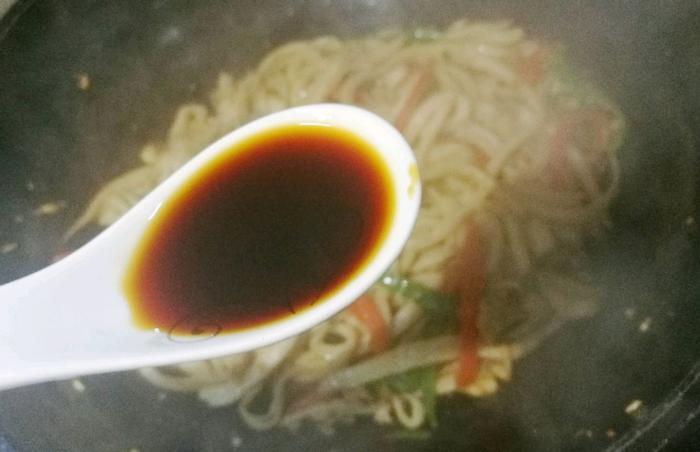 8、加入两勺生抽一勺蚝油,根据个人的口味添加适量的盐。
