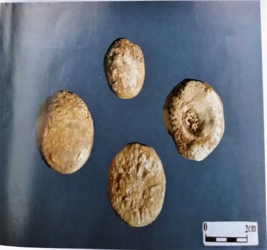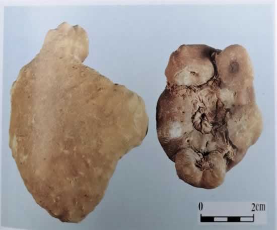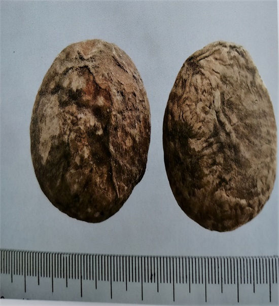 (2)南星的凹陷茎痕大(约占块茎直径1/2或更多),半夏的凹陷茎痕小(约占块茎直径的1/3)。