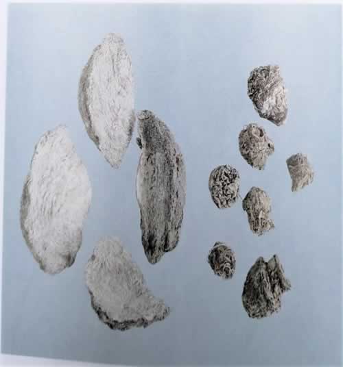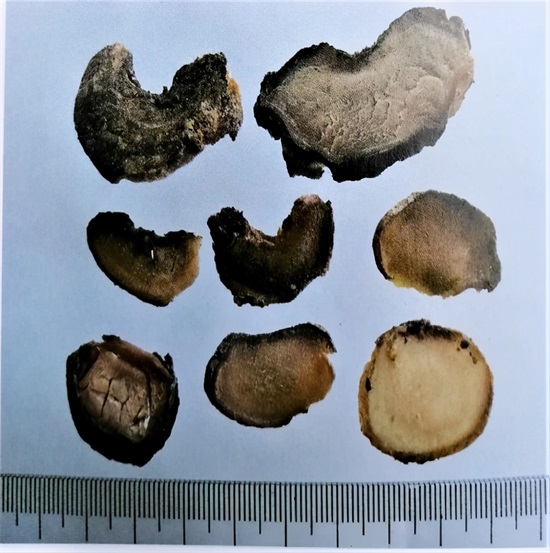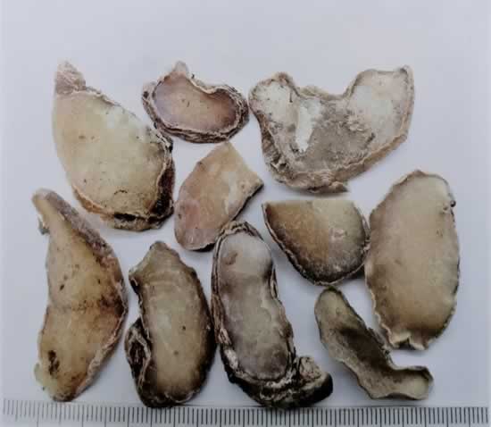 2、天南星饮片都是制南星,由于炮制品方法及时间、切制及干燥方法各地各厂有别,所以每批货颜色不固定。共同的特点是一片片摆开看: