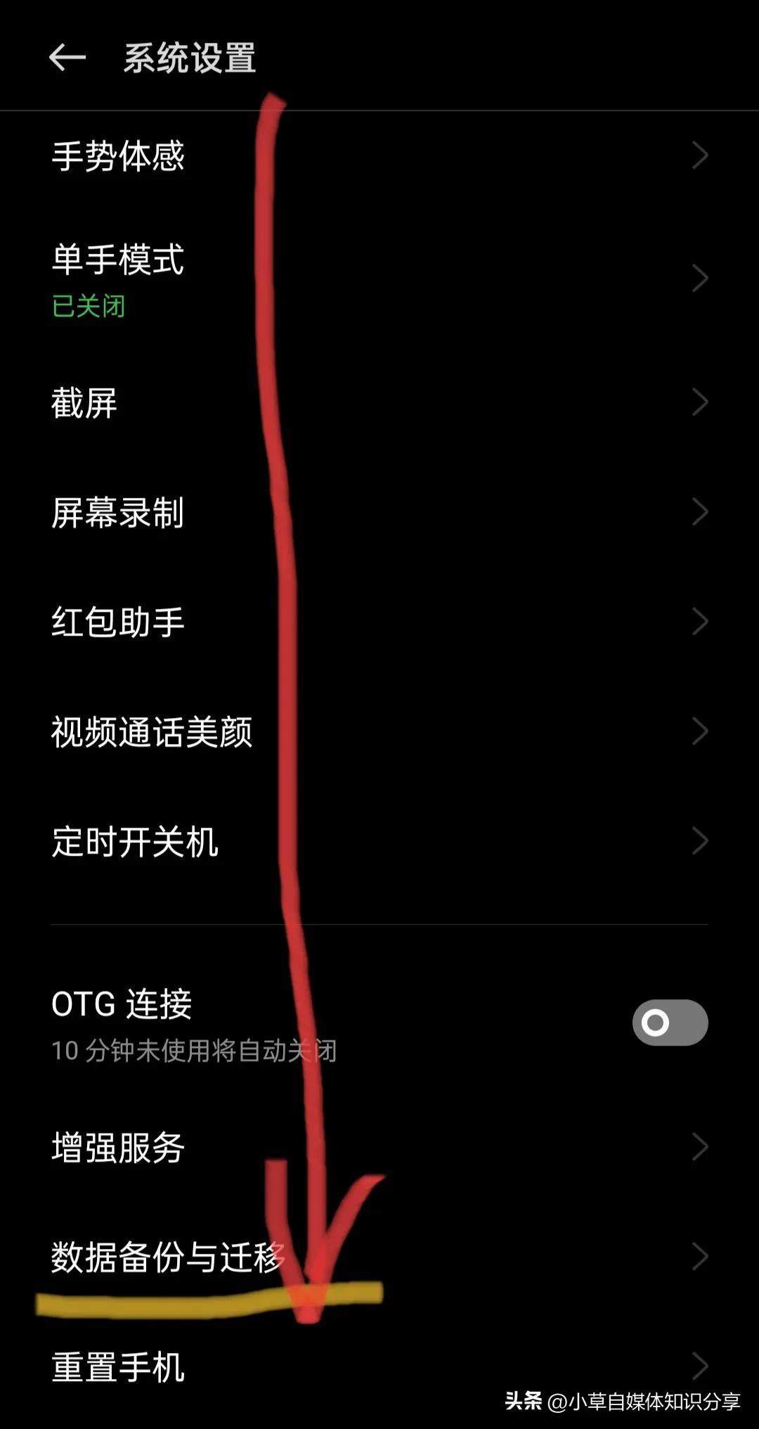 点开系统设置,在这个页面继续往下滑,找到【数据备份与迁移】。