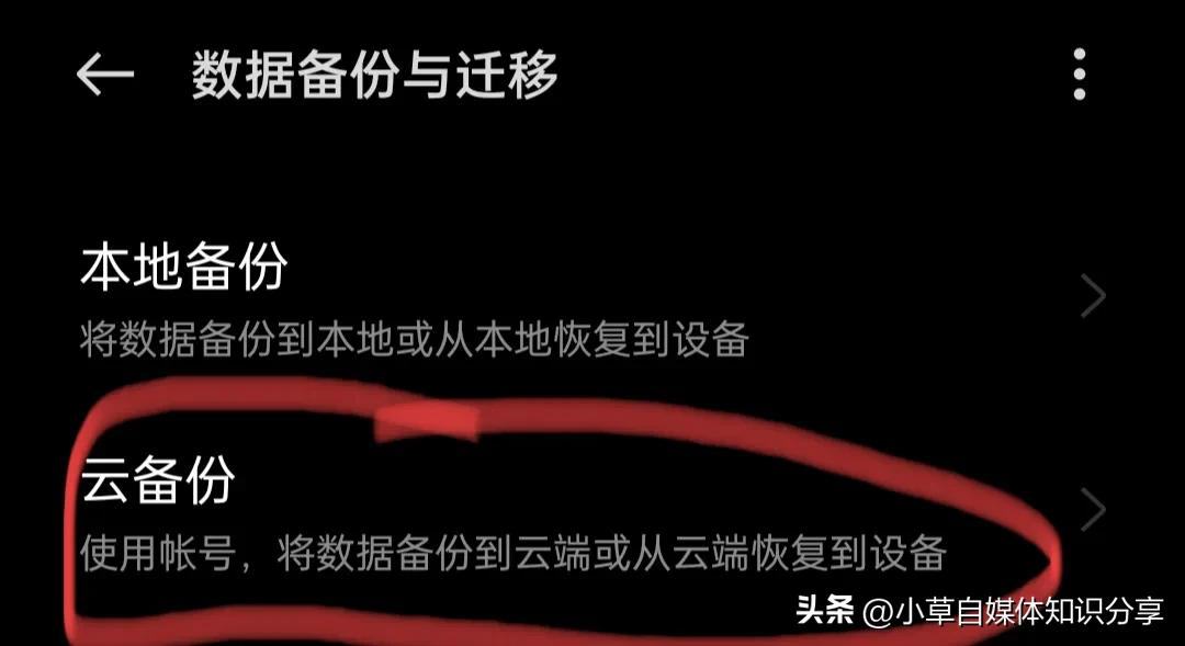 再点一下,看到【云备份】的字样没有?我们点一下它,在手机页面中间有个【设置备份选项】。