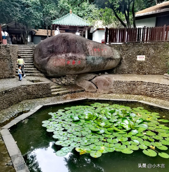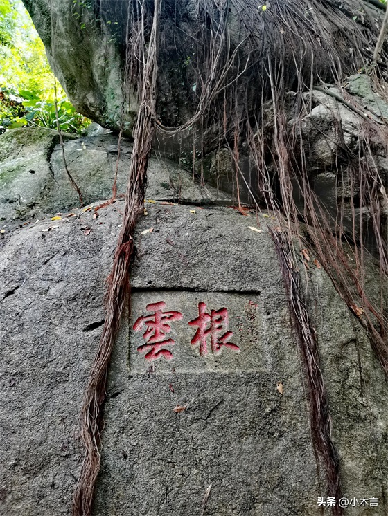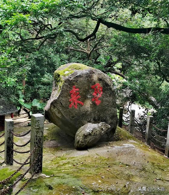 关于这块石头的来历:流传在明代年间的一个夜里,冲虚观一位法师三更坐禅,忽然风雨大作,电闪雷鸣,山摇地动,吓得那位法师坐立不安。第二天早晨,风停雨止,忽见云峰岩上巍然屹立着一块大石头,因不知道这块石块从哪里来,故称“飞来石”。飞来石周边有云根、蓬莱径、桃源洞天等景点。