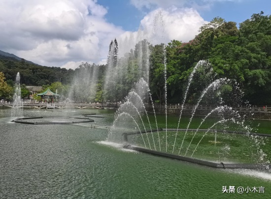 白莲湖位于朱明洞景区中心,总面积约10000平方米,因往昔遍植青莲而得名。湖中建有湖心桥和湖心亭,湖内养有锦鲤数万条。湖面现建有音乐喷泉,每逢节假日、周末开放,景色非常壮观。