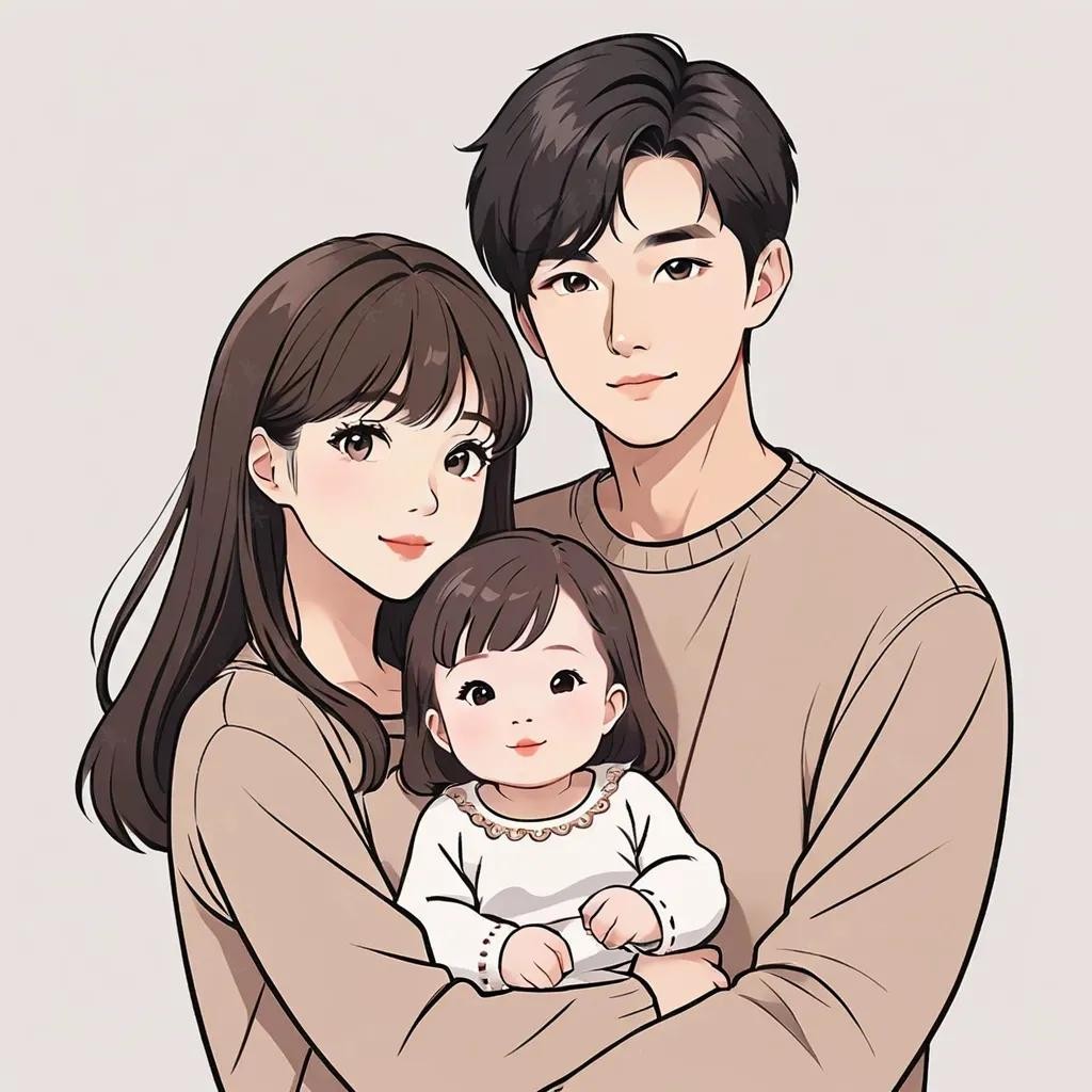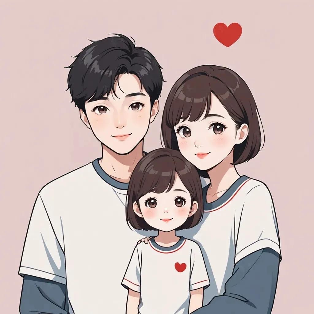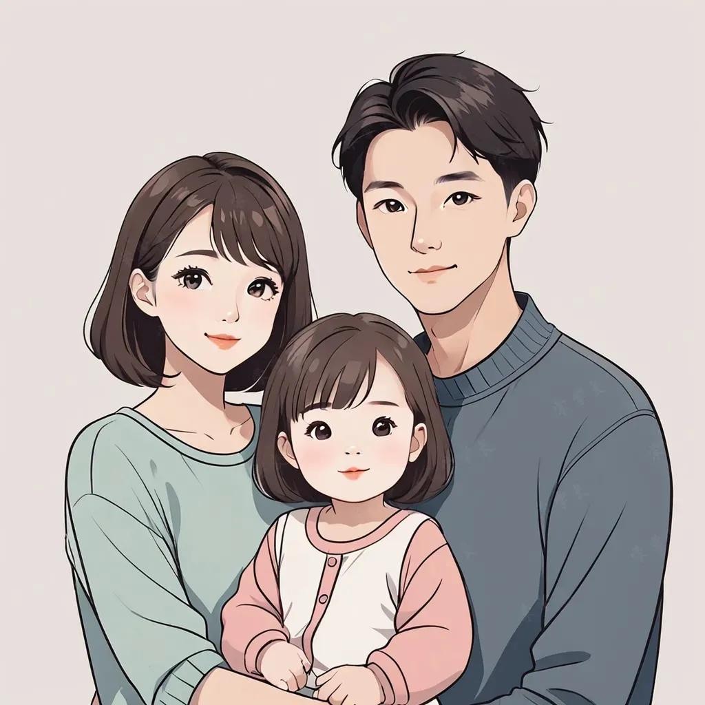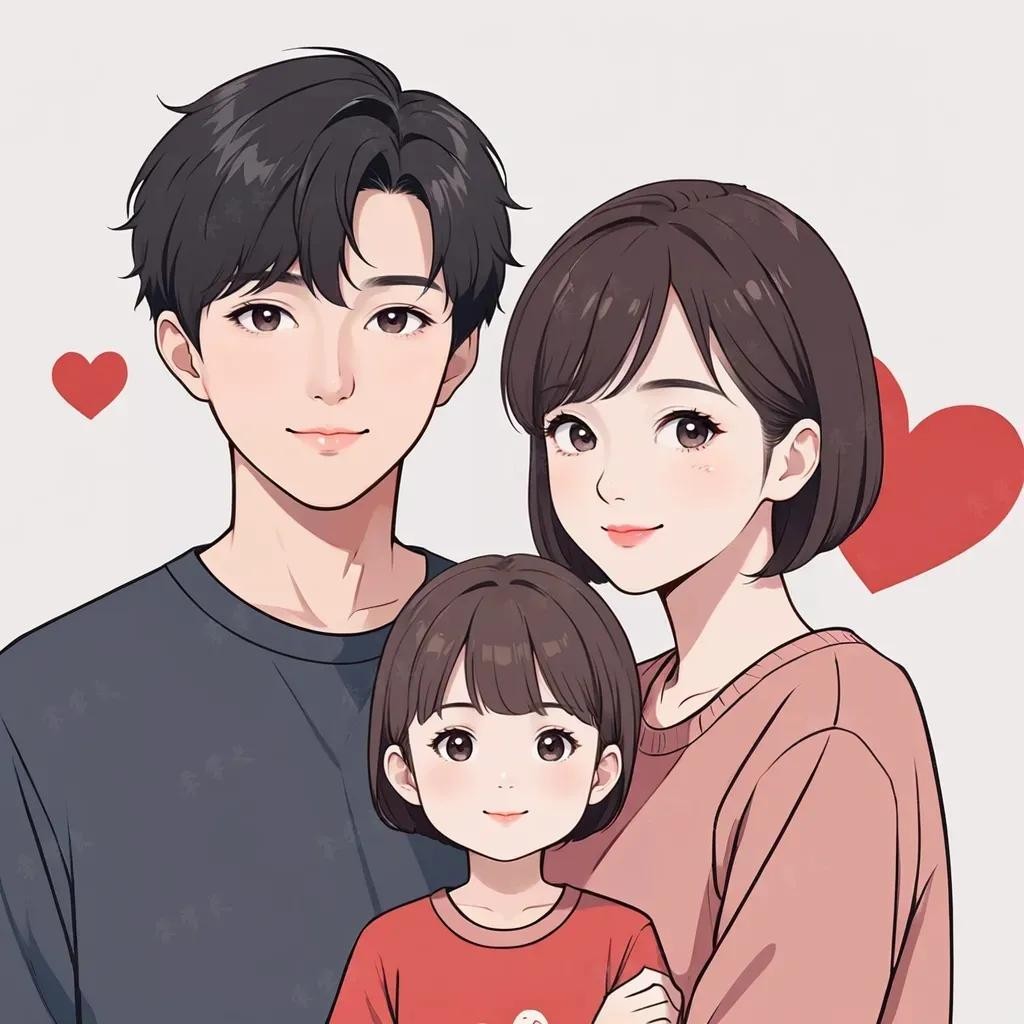 亲子头像 | 女儿和爸爸妈妈一家三口专属手绘卡通头像