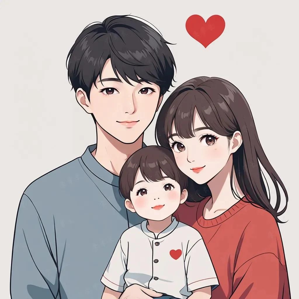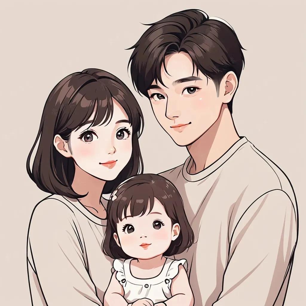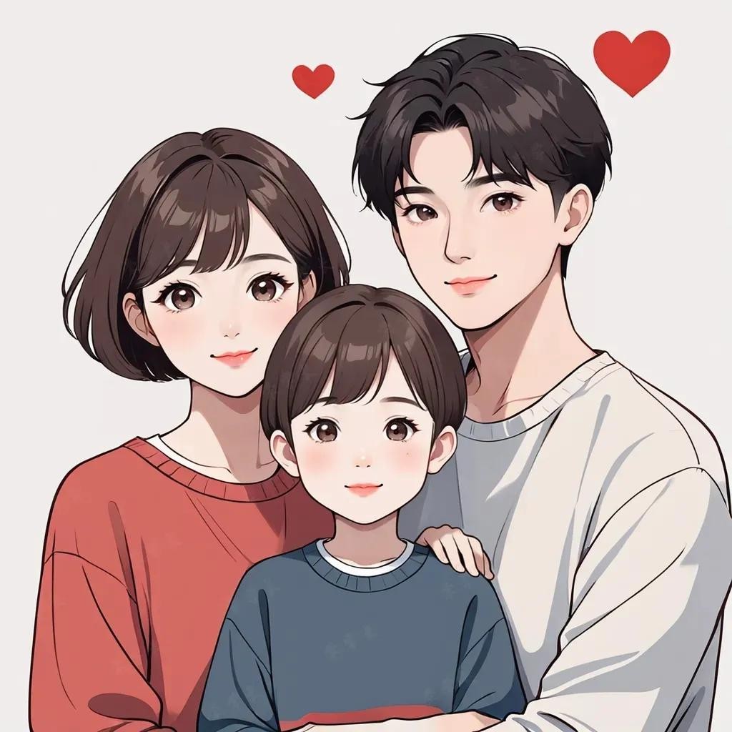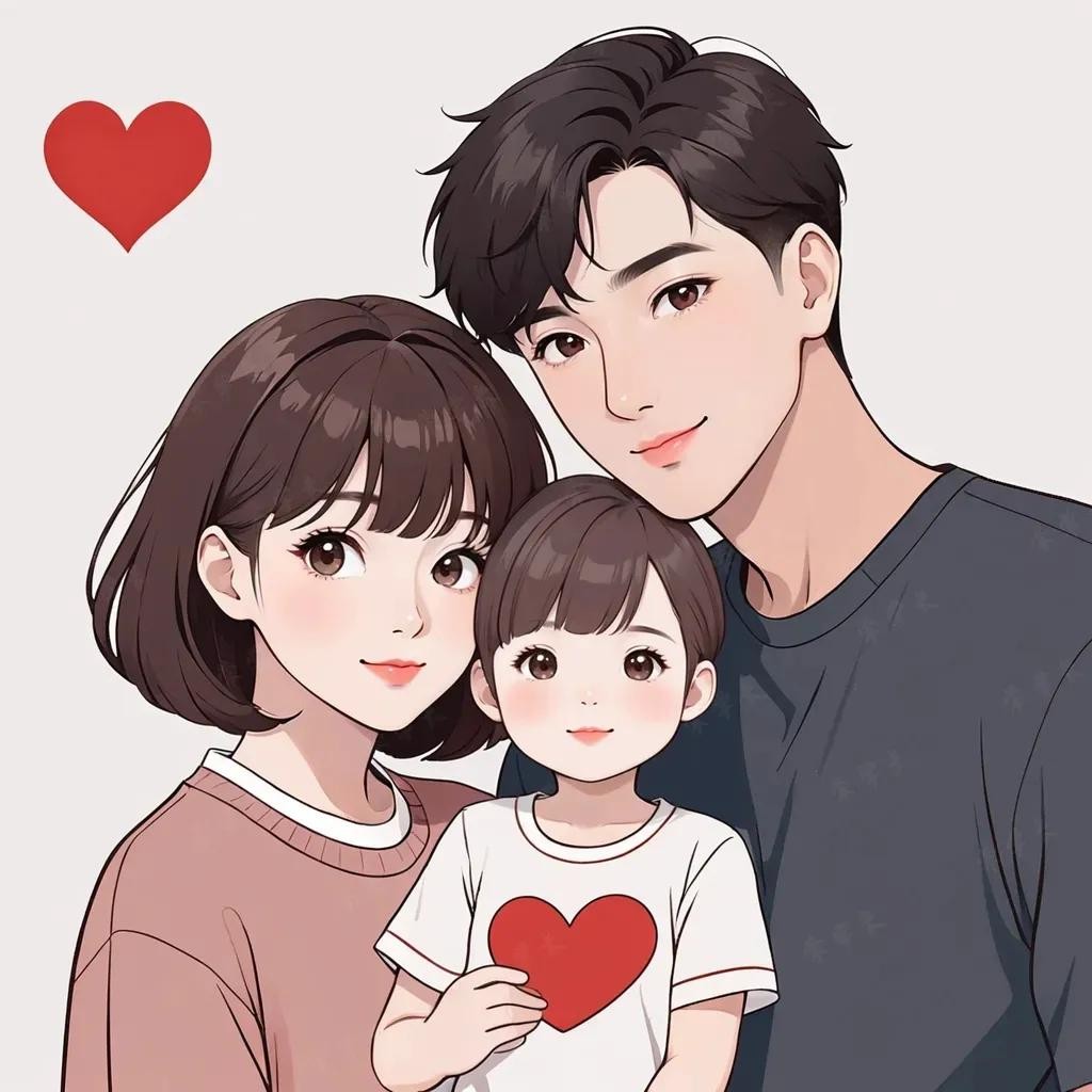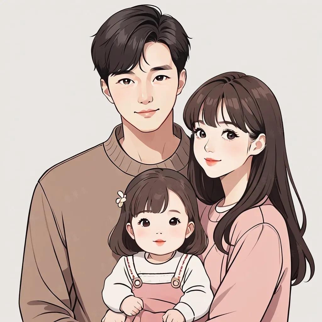 亲子头像 | 女儿和爸爸妈妈一家三口专属手绘卡通头像