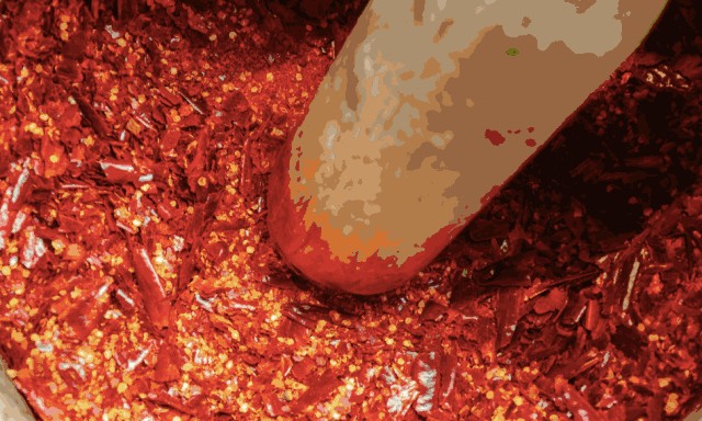 贵州人不仅嗜辣,还会制造各种各样的辣椒:仅用辣椒制作的调味就有几十种,听过没听过的有糍粑辣椒、糟辣椒、煳辣椒面、泡辣椒、酸椒酱、红油辣椒、复合辣椒、阴辣椒、辣椒酱、烧青椒酱、豆豉辣椒等等。而且不同的辣椒搭配不同的菜,贵州人很讲究,比如每天都要吃的蘸水要配糊辣椒,米豆腐一定放的是油辣椒;吃蕨菜放糟辣椒;做辣子鸡加糍粑辣椒。