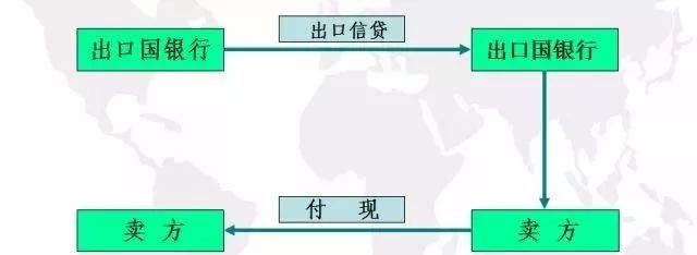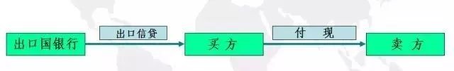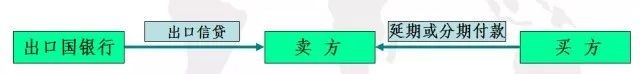 卖方信贷是卖方将产品赊销给买方,规定买方在一定时期内延期或分期付款。卖方通过向本国银行申请出口信贷来填补占用的资金,其过程如图。