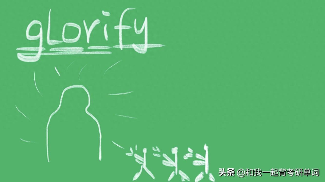 glorify,使……发出辉光,赞美、颂扬上帝或人,吹捧、吹嘘、美化。
