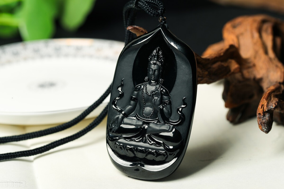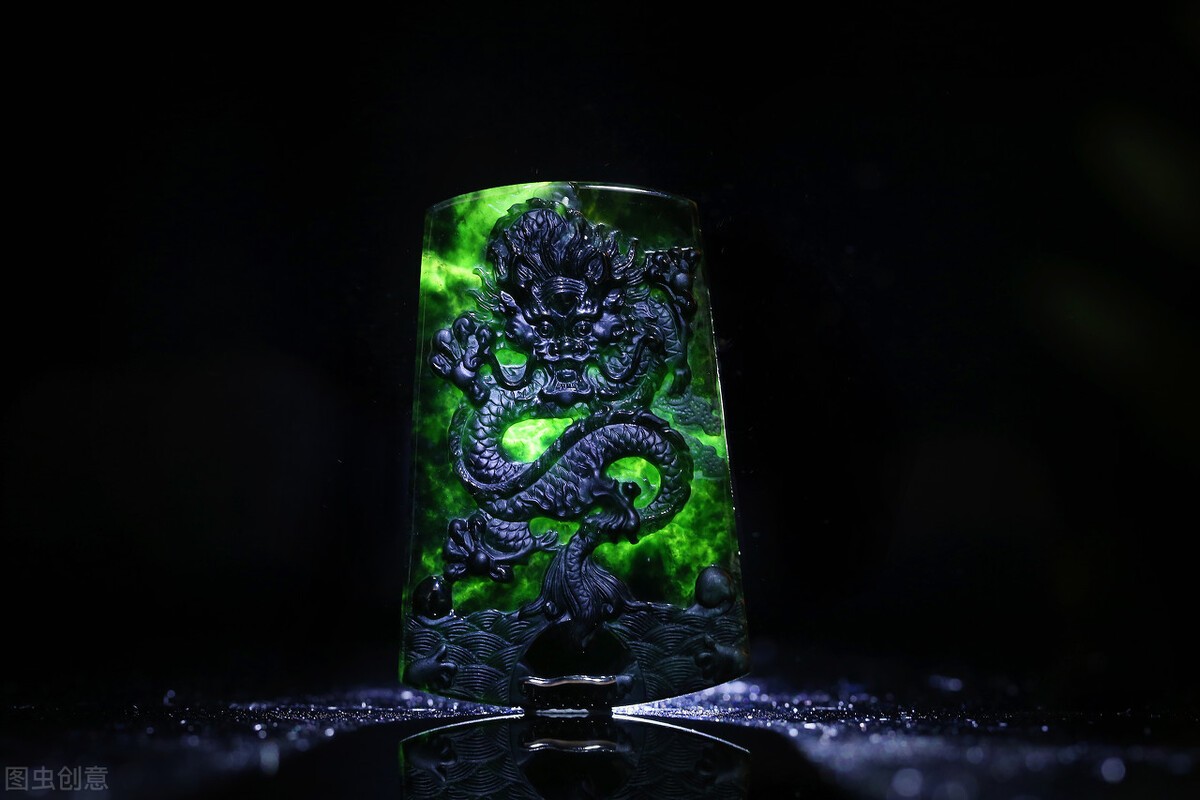 墨翠是指绿的发黑,黑里又透着绿色的翡翠。这主要是由于过量的Cr、Fe造成的,墨翠一般色调很深,外观看起来为黑色,漆黑如墨,而在强光照射下却可以显现出绿色。
