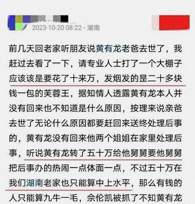 这使得人们更加疑惑,为什么两人没有出现在葬礼上呢?或许这样的葬礼是黄有龙对父亲特殊的怀念和缅怀,是他想通过这种方式告诉大家,“死亡是另一种存在,相对于生命而言”。这样的葬礼不仅展示了一种别样的悼念方式,也反映了背后各种复杂的情感和故事。黄有龙父亲的葬礼引发了人们对他的关注和思考。虽然黄有龙的经济状况备受争议,但无论如何,我们希望黄公孝成老人在另一个世界里安息。同时,这个特殊的葬礼也引发了人们对于死亡和悼念的思考。