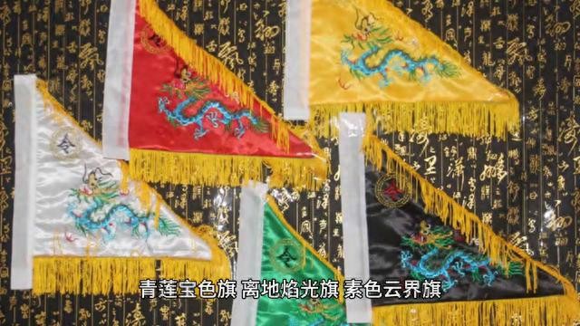2. 关于第五面旗有多种猜测,有人认为第五面旗可能是伏羲氏所执掌的“玄元控水旗”,因为伏羲氏在《封神演义》中是火云宫三圣中的天皇,地位崇高。也有人猜测是真武大帝所执掌的“真武玄天皂雕旗”,但因其出现在《西游记》中,从《封神演义》的角度来看不太符合。还有一种说法是冥河老祖所执掌的幽冥血海修罗旗,不过此旗出现在现代小说的《佛本是道》中。