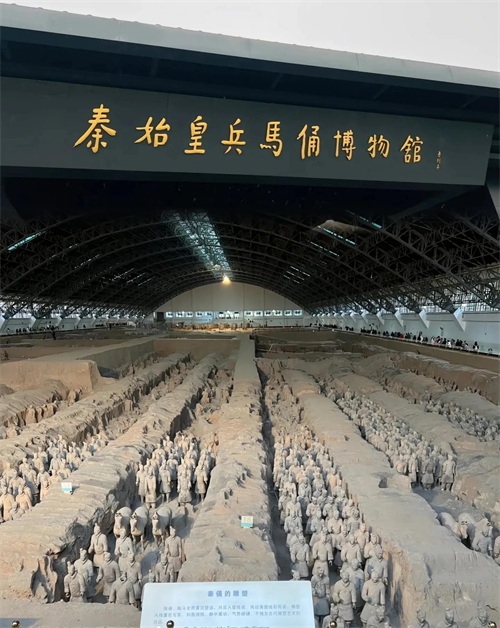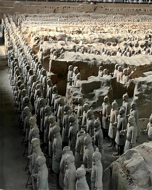 2. **秦始皇陵兵马俑**:位于陕西省西安市附近,是秦始皇陵的陪葬坑,内藏有数千尊兵马俑,包括步兵、骑兵和战车,以及武器和马匹等,展示了秦朝军队的威严阵容。这些陶俑的制作工艺精湛,神态各异,是了解秦朝军事、雕塑艺术和丧葬文化的宝贵资料。