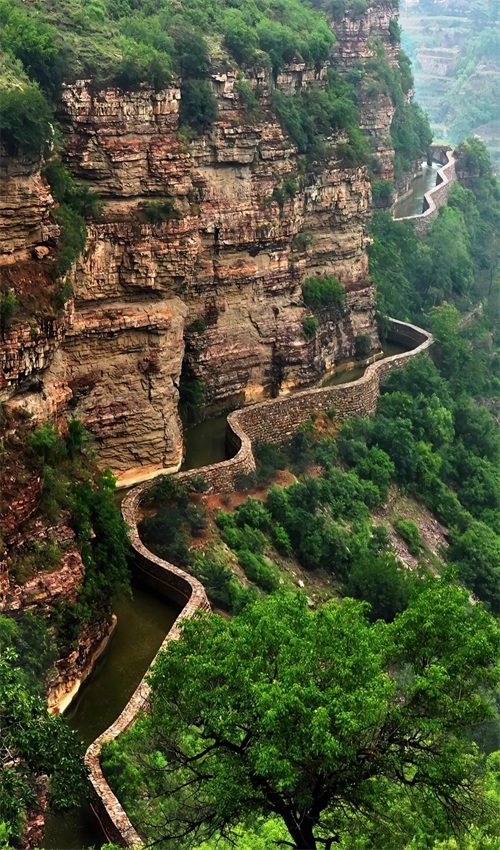 8. **红旗渠**:位于河南省林州市,是20世纪60年代当地人民在极其艰难的条件下,历时近十年建成的一条人工灌溉水渠。它全长约1500公里,穿越太行山脉,解决了当地严重缺水的问题,被誉为“人工天河”,体现了中国劳动人民自力更生、艰苦奋斗的精神。