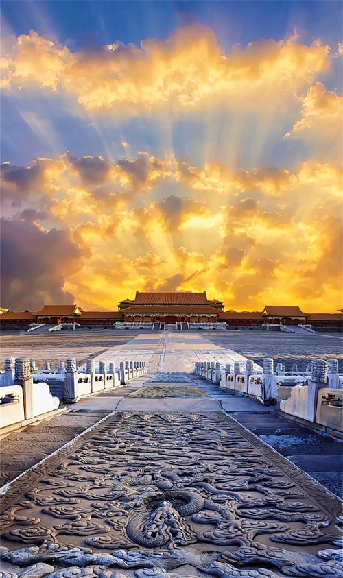 4. **北京故宫(紫禁城)**:位于北京市中心,是明清两代的皇宫,也是世界上现存规模最大、保存最完整的木质结构古建筑群。它以其严谨的布局、辉煌的宫殿、丰富的藏品展示了中国古代皇家建筑艺术的顶峰,是中华文明的瑰宝。