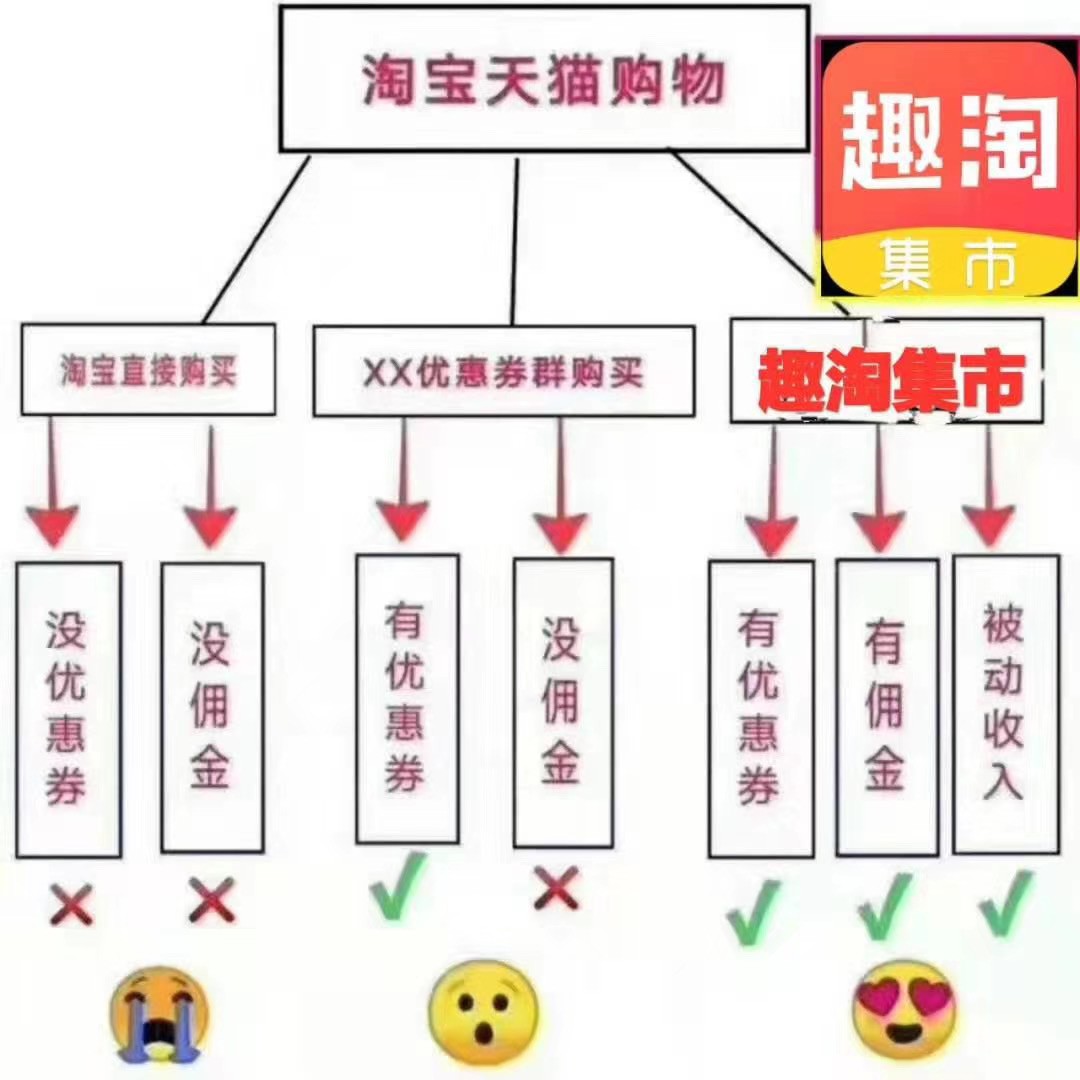 加入趣淘集市就等于你拥有了所有购物平台的特权,不用开店不用卖货不用售后,就是简单分享,替别人省钱就=自己赚钱。