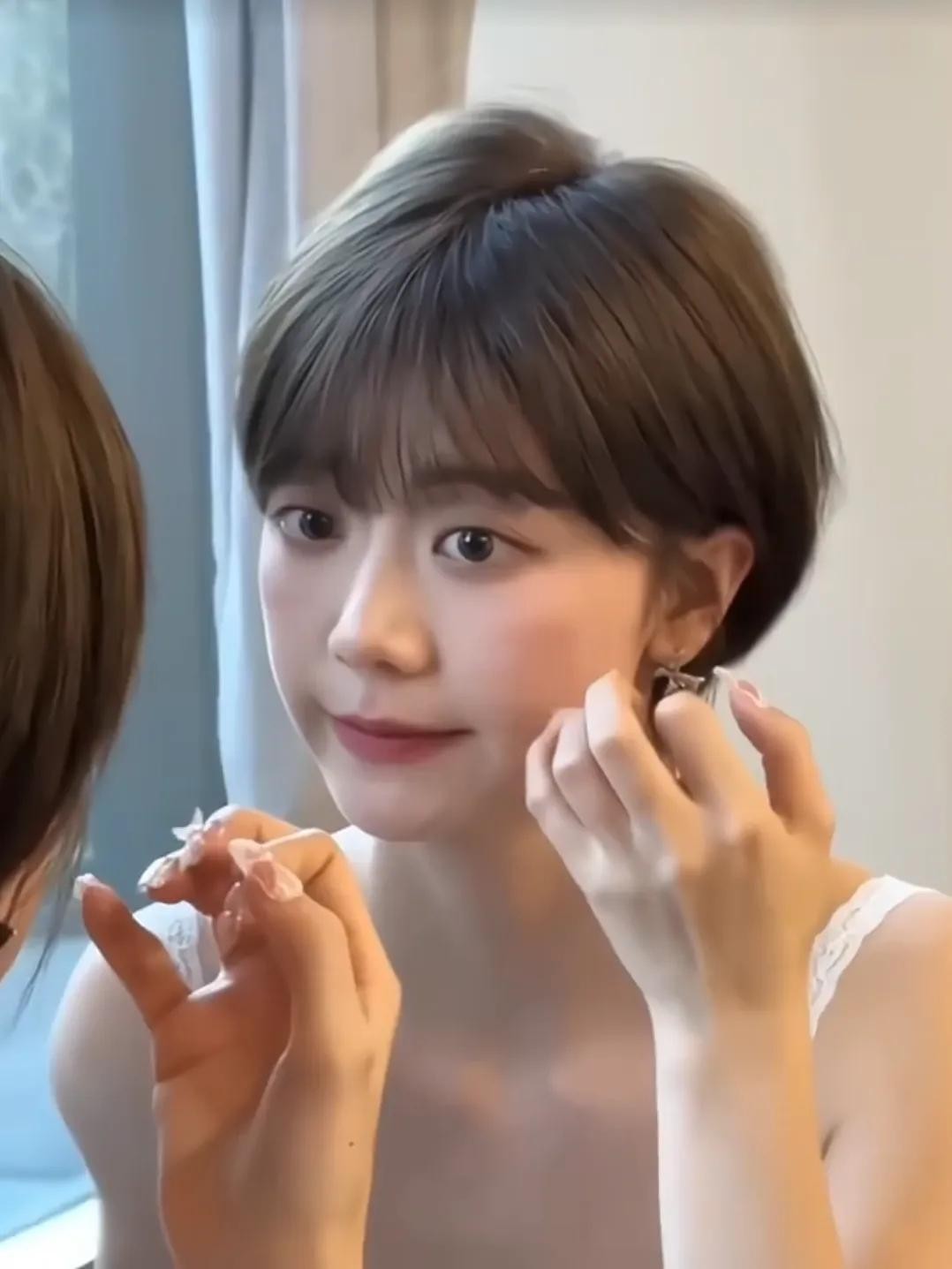 短发的第一要点是颅顶尽量要蓬松、只要头顶蓬松起来,即使脸型全部暴露出来,也不会显大!反而特别清爽、利落!