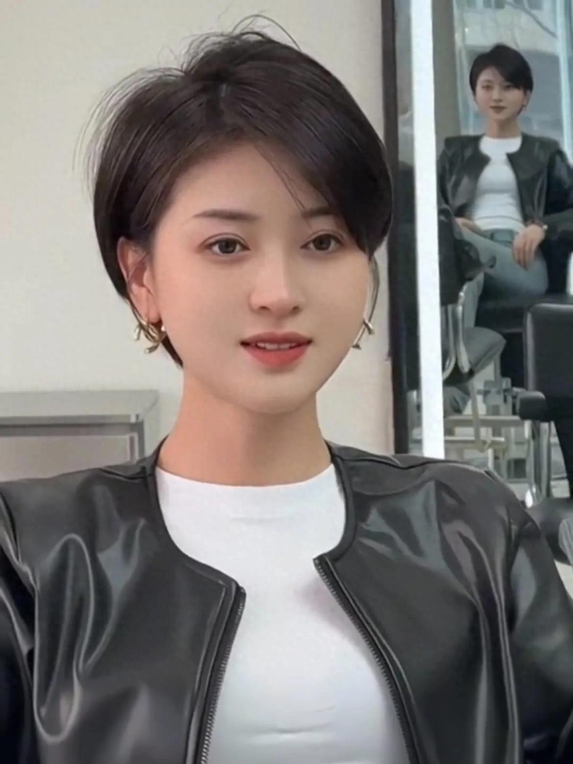 对于一些对自己颜值、五官自信的女性,可以尝试这类风格短发!没有过多的修饰,脸型完全打开来,是一种勇于表达的风格!