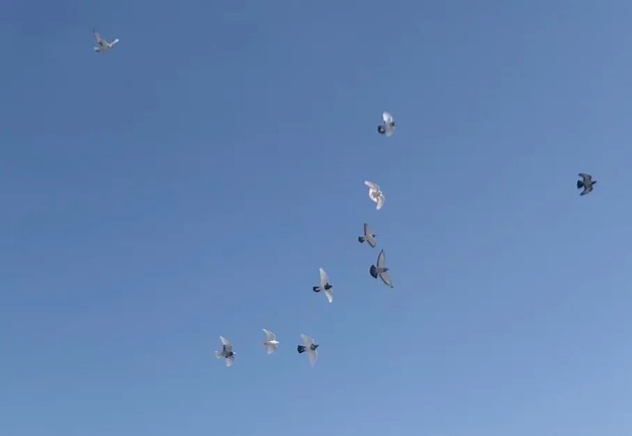 比赛中,一只极速飞行中的白鸽身躯瞬间向上一挺,随后360度垂直旋转而下,白鸽的身姿宛如一片在空中盛开的花,引得在场群众加油声、喝彩声此起彼伏,让前来观赛的群众大饱眼福。
