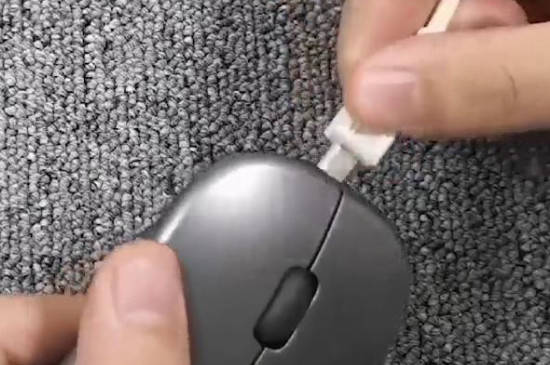 无线鼠标很少是充电的,在充电之前要先找到无线鼠标的充电孔,一般无线鼠标的充电孔在鼠标的最前端,查看最前端是否有一个1cm左右的充电孔。