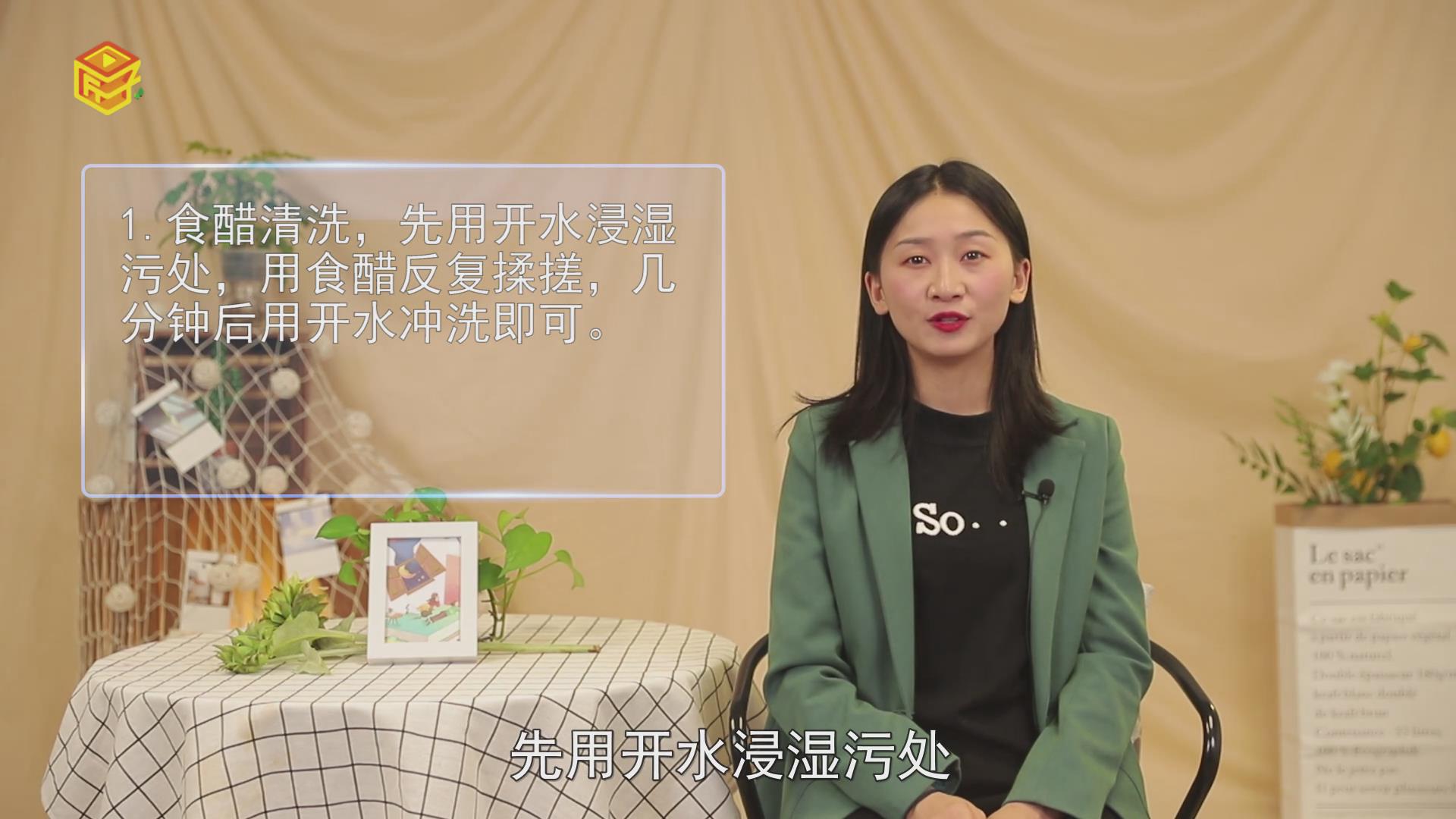 1.食醋清洗,先用开水浸湿污处,用食醋反复揉搓,几分钟后用开水冲洗即可。
