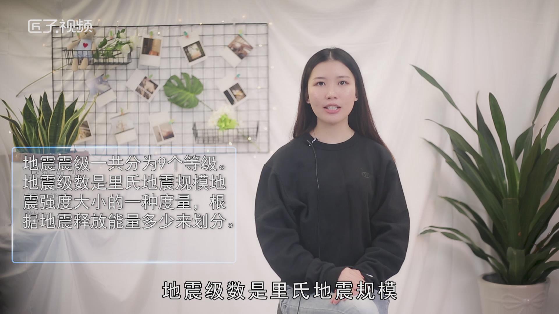地震震级一共分为9个等级。地震级数是里氏地震规模地震强度大小的一种度量,根据地震释放能量多少来划分。具体来说是根据离震中一定距离所观测到的地震波幅度和周期,并且考虑从震源到观测点的地震波衰减,经过一定公式,计算出来的震源处地震的大小。